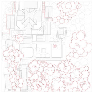 神社境内に建築を建てるとき、どのようにその混成系をつくることができるだろうか。境内を削るでもなく、境内と同化するでもない、重なり合うような設計を目指した。境内の建築性を細やかに拾い上げながら、その場所ごとへの対応によって全体を作っていく。このリノベーションのような手法が、神社境内に対する唯一の敬意の示し方だと思う。
